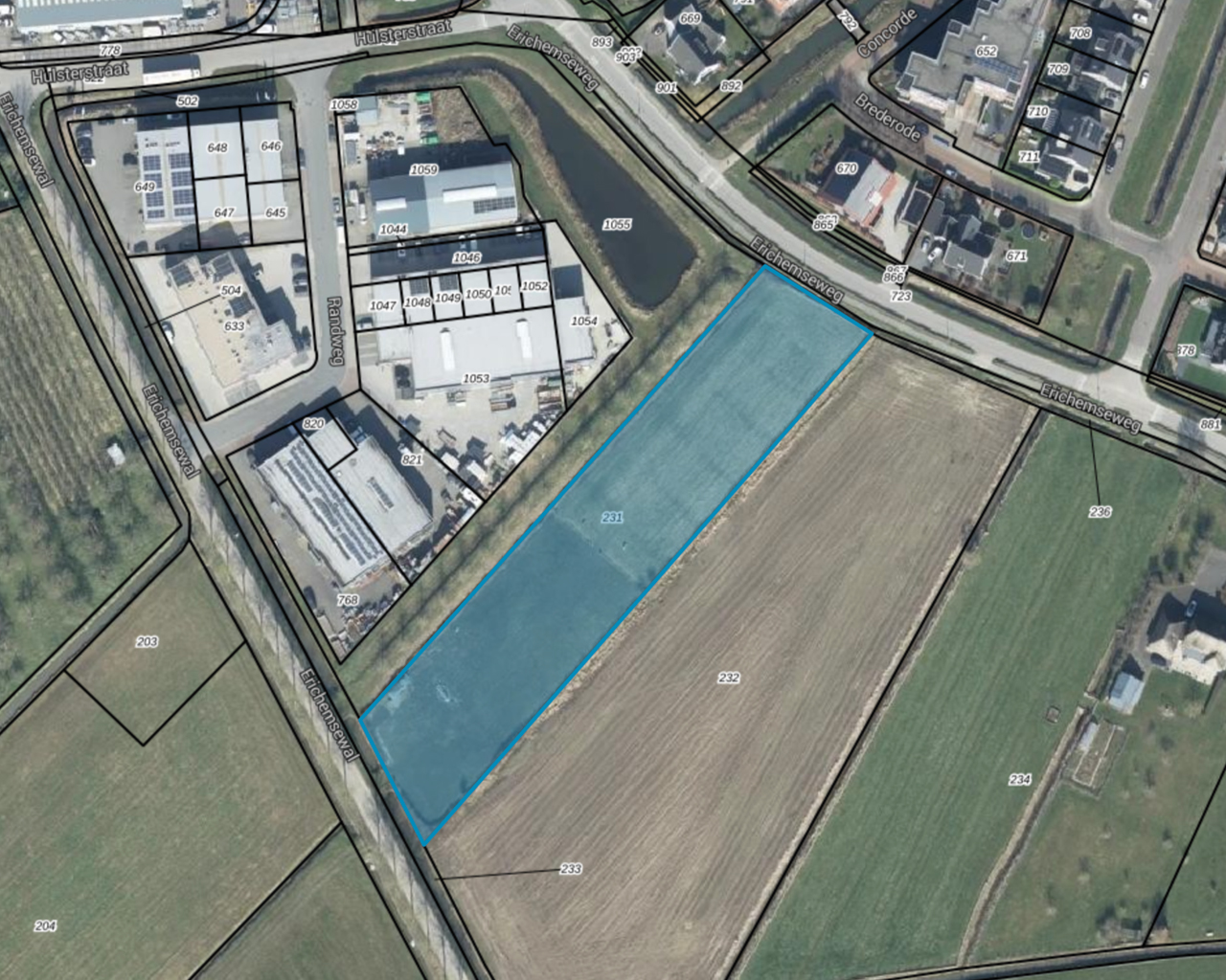 Kadastraal bekend gemeente Buren, sectie P, nummer 231, groot 0.66.95 ha. Het perceel is gelegen aan de Erichemsewal te Buren